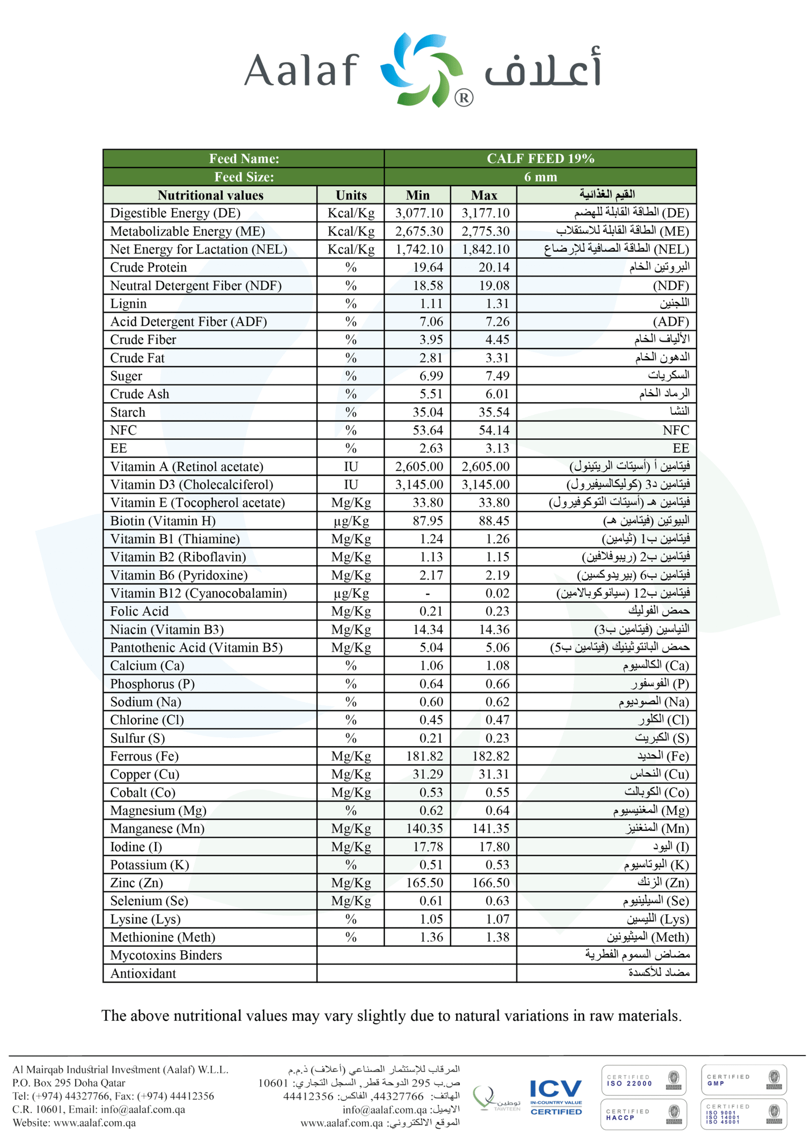 المصنع : +974 44327769