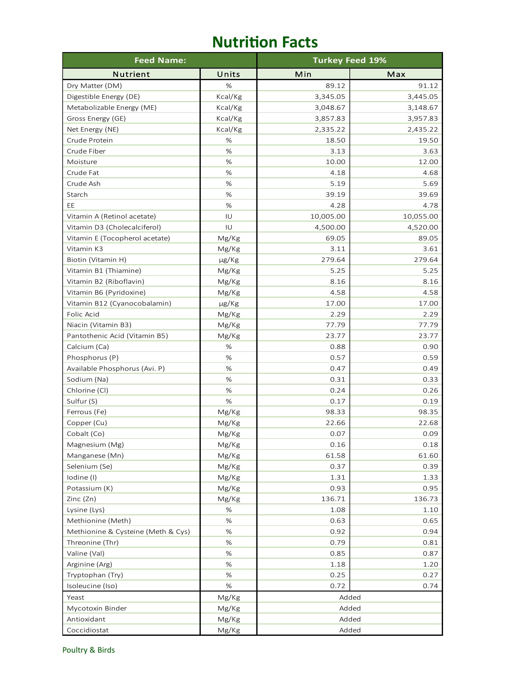 Balanced feed for growing turkeys. Promotes healthy development and strong performance during the grower phase.