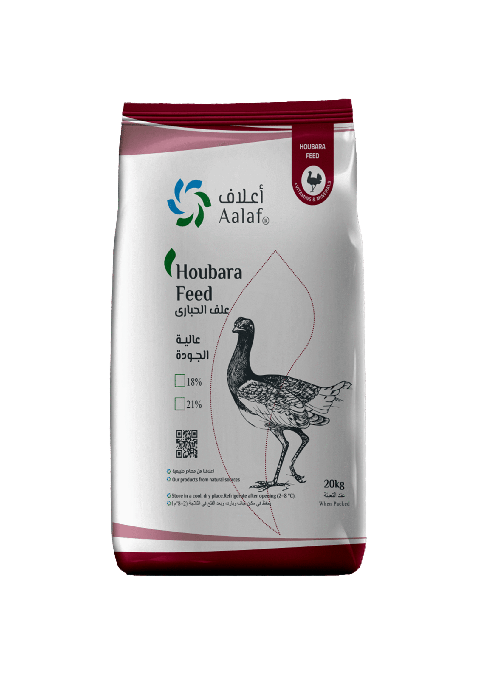 Aalaf Houbara Grower Feed 21% (Extruded) is fortified with important vitamins that support daily health: